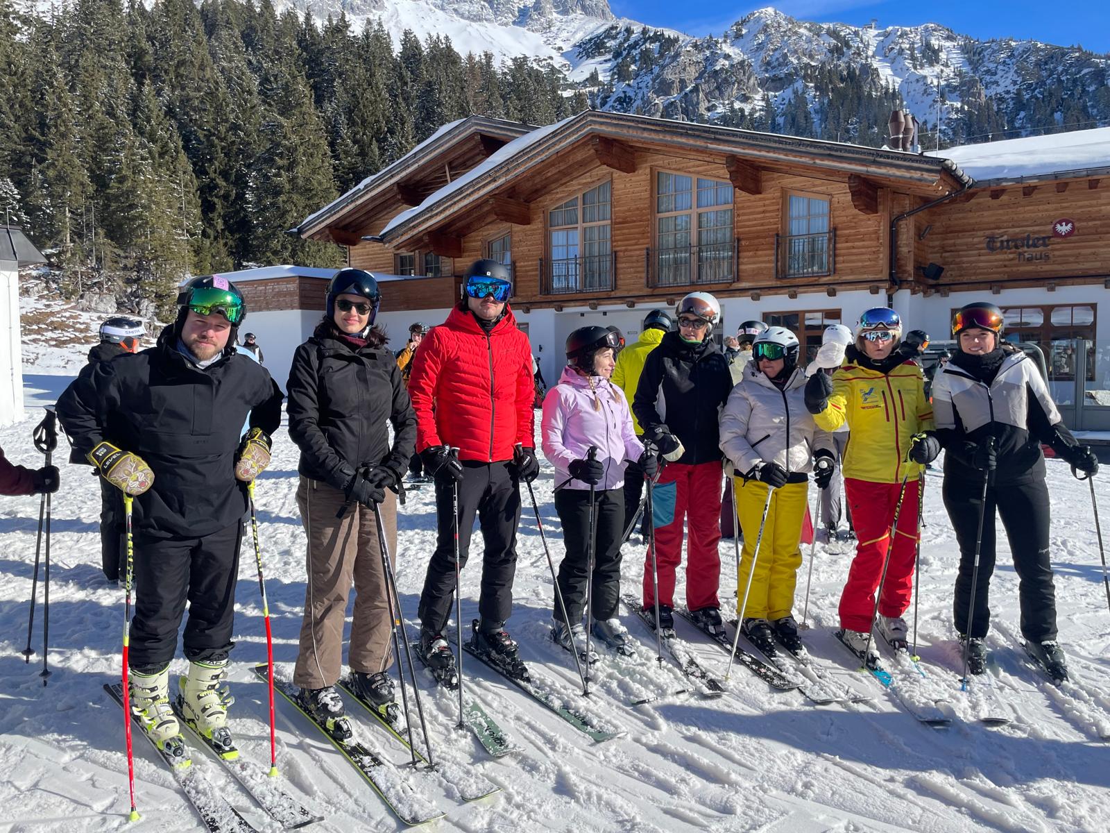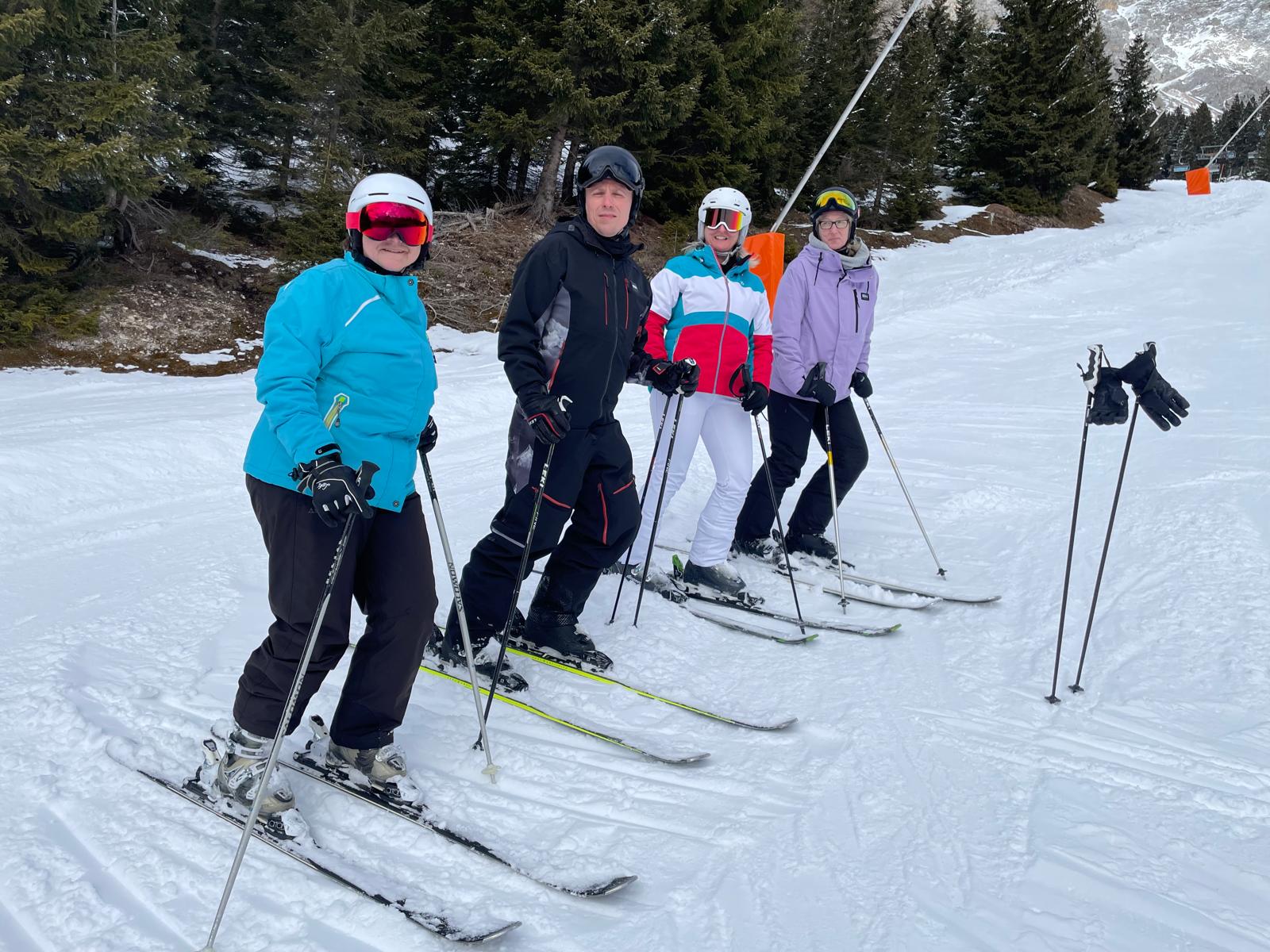 Der erste Skitag rückte näher und am Morgen fuhr die Gruppe in Richtung Zugspitze, ins Skigebiet von Ehrwald. Kaiserwetter mit strahlendem Sonnenschein vor dem Zugspitzmassiv und besten Schnee- und Pistenverhältnissen aufgrund der kalten Temperaturen erwartete die Skifahrer. Sie wurden in verschiedenen Gruppen entsprechend ihres skifahrtechnischen Levels eingeteilt und professionell durch die vom Deutschen Skiverband ausgebildeten Übungsleiter unterrichtet. In kleinen Gruppen wurden alle Teilnehmer auf ihrem Leistungsniveau abgeholt und konnten individuell betreut werden. So fühlt sich jeder sicher und spürt die eigenen Fortschritte am besten.